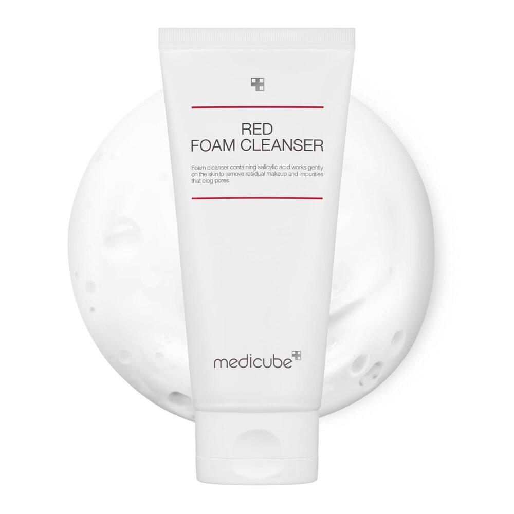 Buy Medicube – Red Foam Cleanser for acne-prone, sensitive skin. Infused with salicylic acid, tea tree extract, and centella asiatica, this vegan, sulfate-free cleanser deeply cleanses, controls oil, and soothes irritation for clear, refreshed skin.