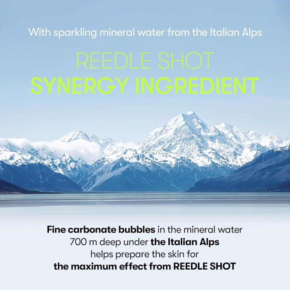- After cleansing, gently swipe a Reedle Shot Synergy Sparkling Toner Pad across your face and neck, avoiding the eye area.