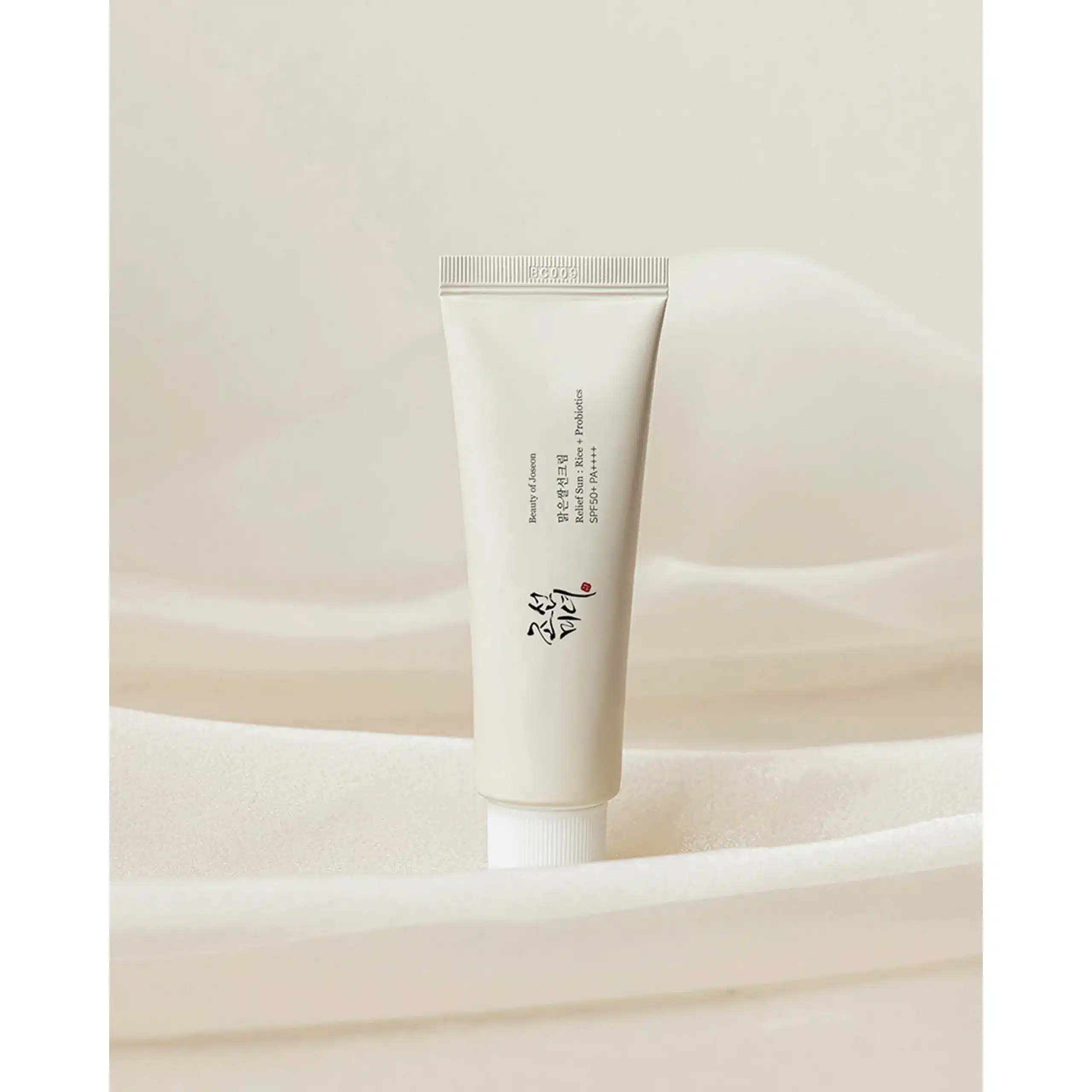 Buy Beauty of Joseon Relief Sun: Rice + Probiotics SPF50+ PA++++ for ultimate sun protection and hydration. Enriched with rice extract and probiotics, it nourishes, soothes, and shields your skin. Lightweight, non-greasy formula absorbs quickly with no white cast—ideal for all skin tones! Perfect for daily use under makeup.