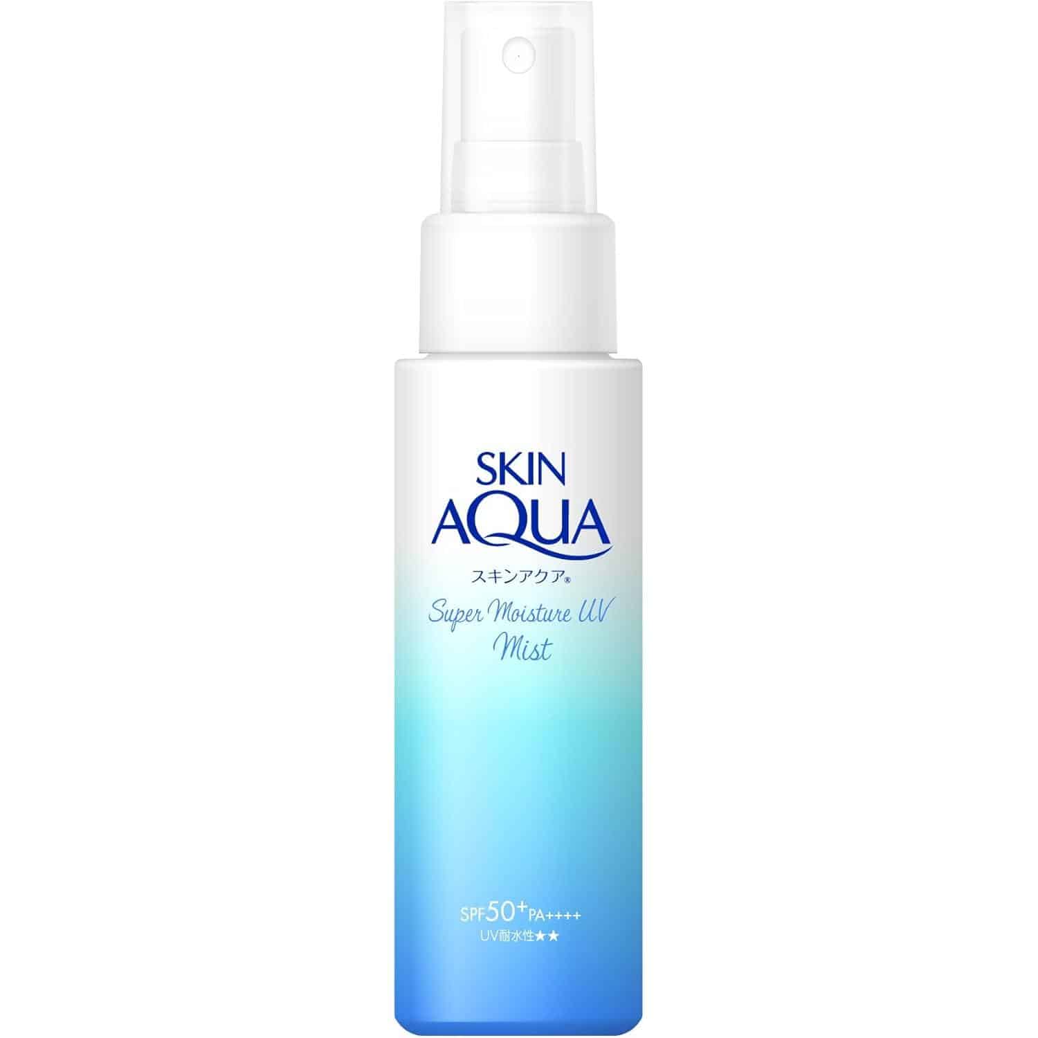 Shield your skin with Rohto Mentholatum Skin Aqua Super Moisture UV Mist SPF 50+ PA++++ for lasting hydration and protection.