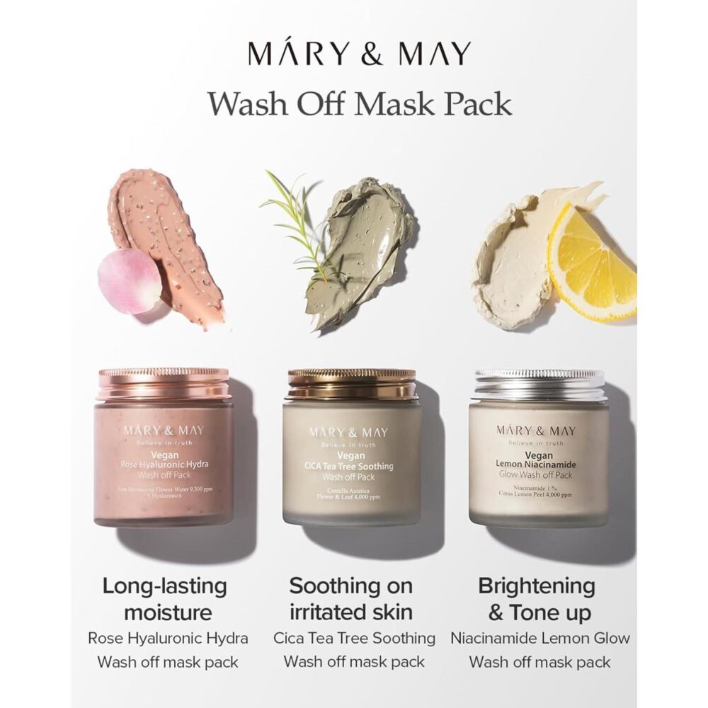 Buy Mary & May Rose Hyaluronic Hydra Wash Off Mask Pack for deep hydration and radiant skin. This luxurious wash-off mask, enriched with French rose petals, Damask rose water, and hyaluronic acid, detoxifies and nourishes while soothing irritation. Vegan, cruelty-free, and ideal for all skin types. Buy Now and Add to Cart for an instantly refreshed glow!