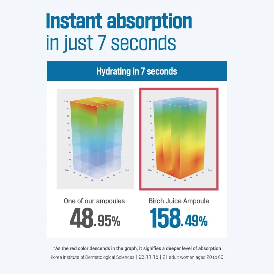 The Round Lab Birch Juice Moisturizing Ampoule excels with its 7-second absorption and 72-hour hydration, powered by flexible particle technology. This fragrance-free, vegan-friendly formula is dermatologist-tested and uses eco-friendly packaging, making it ideal for sensitive skin. Its non-greasy, watery texture ensures seamless layering in any skincare routine.