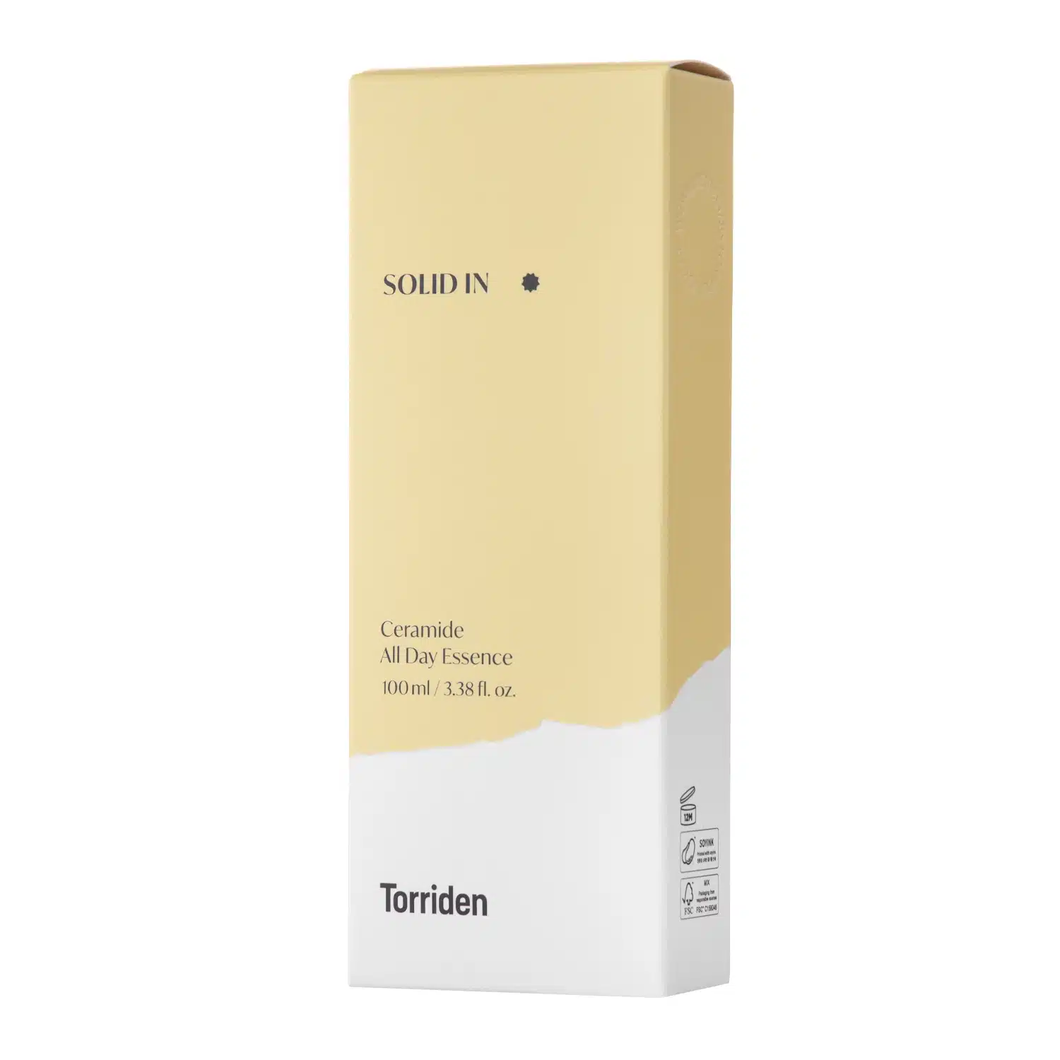 Buy Torriden Solid-In – Ceramide All Day Essence for lasting hydration and strengthened skin. This vegan, non-sticky formula combines 5D Ceramide Complex and D-Panthenol to lock in moisture, soothe sensitive skin, and protect against environmental stressors. Suitable for all skin types, this lightweight essence absorbs quickly, leaving skin soft and radiant.