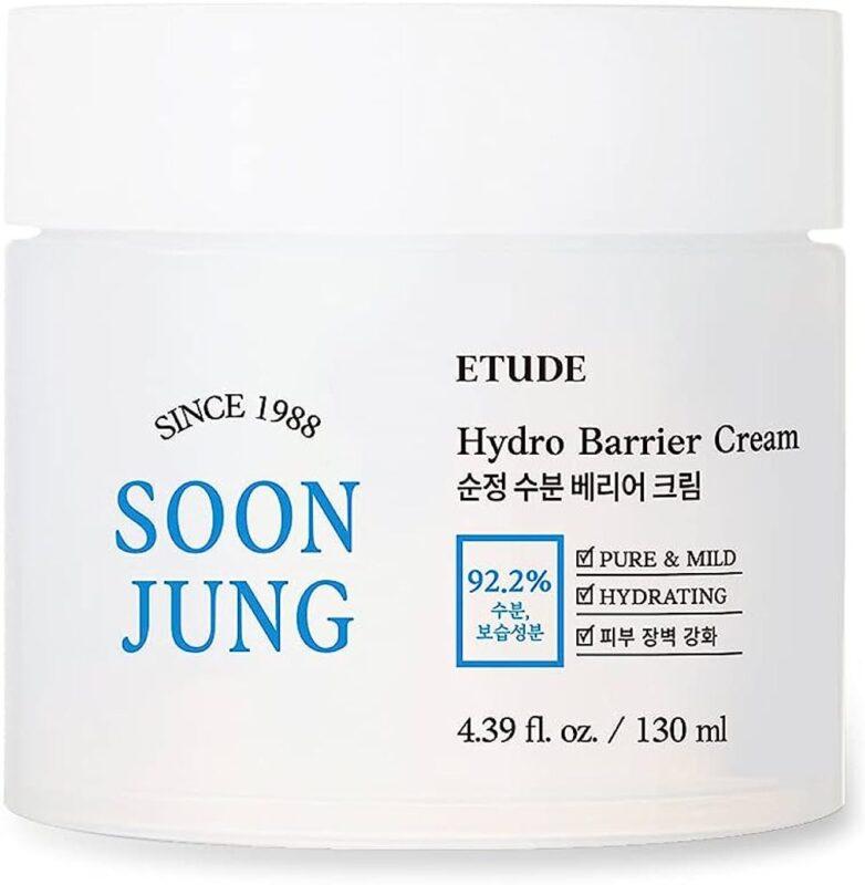 Buy Etude Soon Jung Hydro Barrier Cream for deep hydration and skin barrier protection. Infused with Panthenol and Madecassoside, this lightweight cream soothes and repairs stressed, dry, and sensitive skin. With 92.2% plant-based ingredients and a pH-balanced formula of 5.5, it delivers long-lasting hydration while strengthening the skin’s defense. Suitable for all skin types.