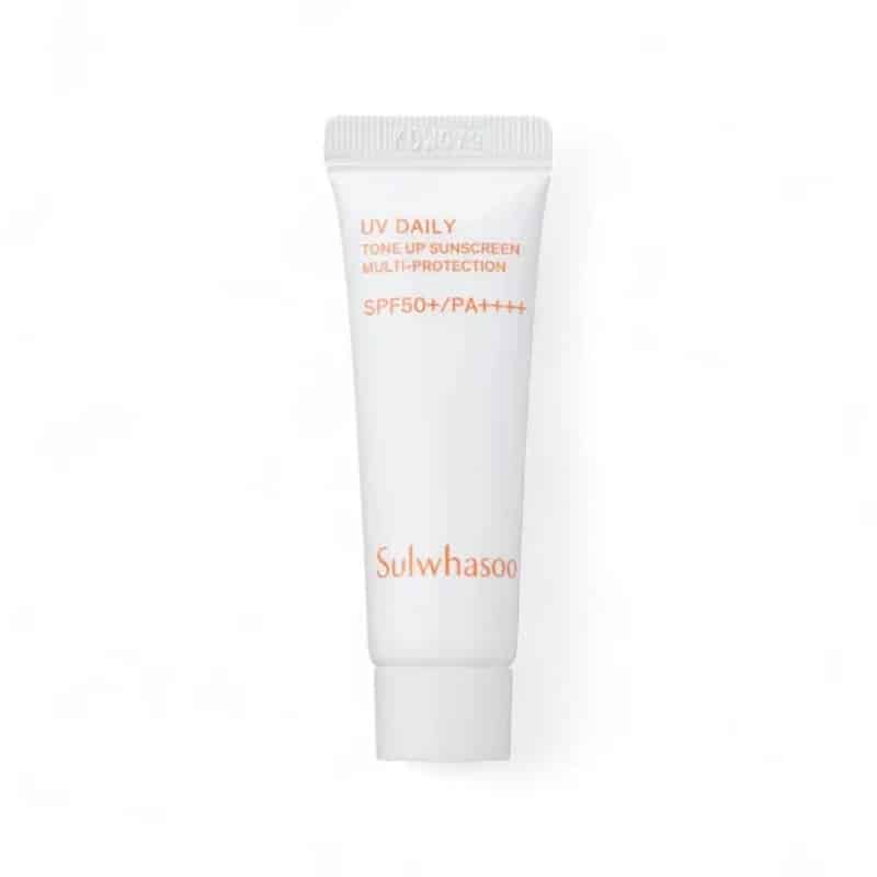 Buy Sulwhasoo UV Daily Tone Up Sunscreen Mini for SPF 50+ sun protection and radiance! This lightweight sunscreen brightens sensitive skin with white ginseng for a non-greasy, dewy finish. Add to cart for a travel-friendly Korean skincare essential!