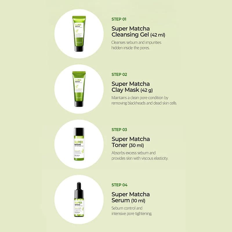Achieve smooth, clear skin with Some By Mi – Super Matcha Pore Care Starter Kit, a complete skincare solution that targets pores, balances oil production, and nourishes your complexion.
