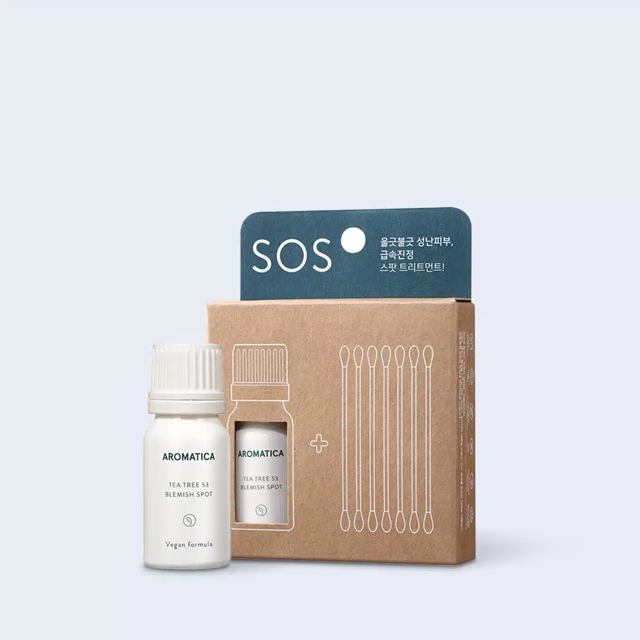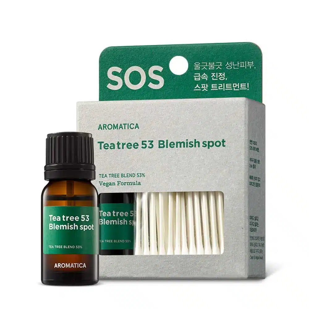 Buy Aromatica Tea Tree 53 Blemish Spot Set to effectively target and soothe blemishes. This set includes a 10ml Tea Tree 53 Blemish Spot treatment and 50 cotton swabs for precise application. Formulated with 20% tea tree oil, 33.3% tea tree extract, LHA, and lemon balm extract, it calms irritated skin, gently exfoliates, and relieves skin stress. The hypoallergenic formula is suitable for sensitive skin, and the compact size allows for convenient, on-the-go treatment.