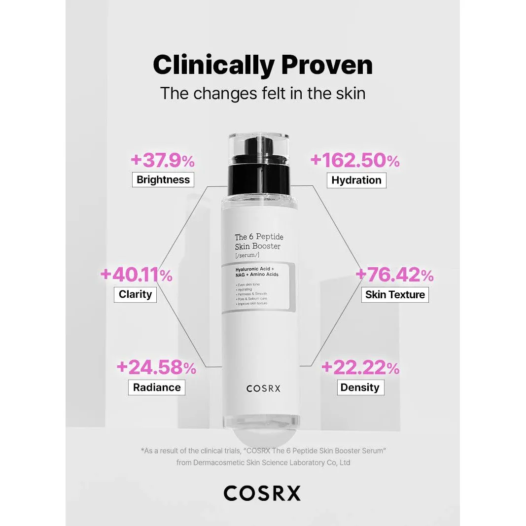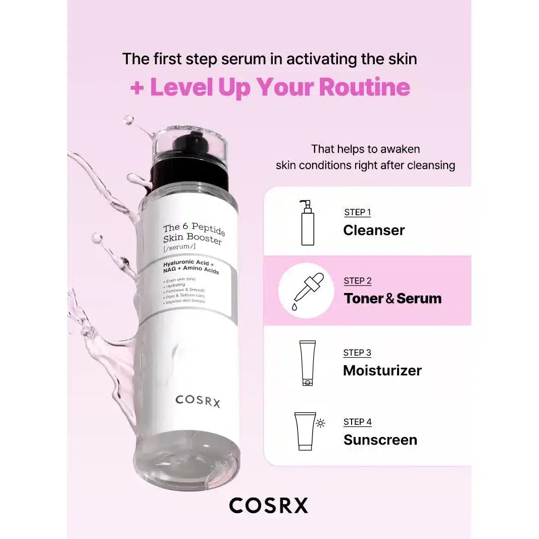Buy COSRX The 6 Peptide Skin Booster Serum for a transformative skincare experience. Infused with 6 potent peptides and Niacinamide, this lightweight serum targets pores, fine lines, and dullness, leaving your skin firm, radiant, and smooth. Perfect as a first-step booster to enhance the rest of your skincare routine.