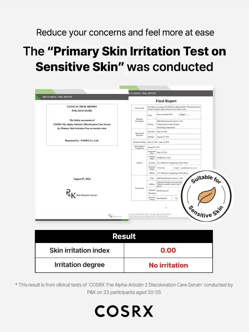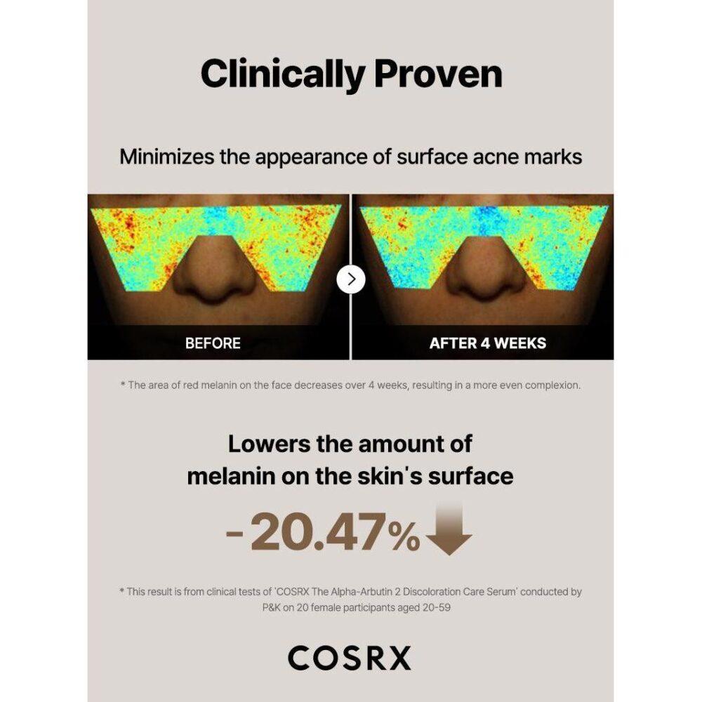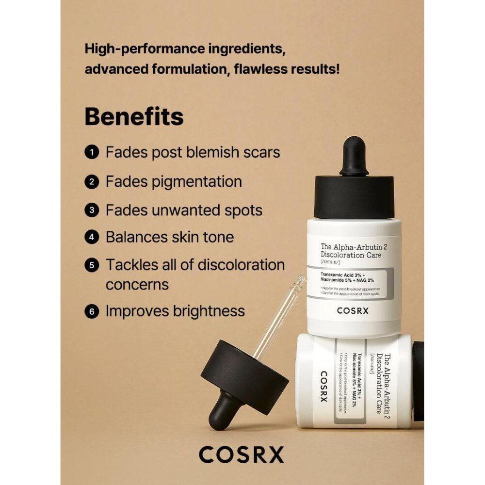 Buy Cosrx The Alpha-Arbutin 2% Discoloration Care Serum for visibly brighter and even-toned skin. This lightweight and vegan-friendly serum combines Alpha-Arbutin, Niacinamide, and Hyaluronic Acid to fade dark spots, reduce discoloration, and deeply hydrate your skin. Perfect for all skin types, it soothes irritation while restoring a radiant glow.