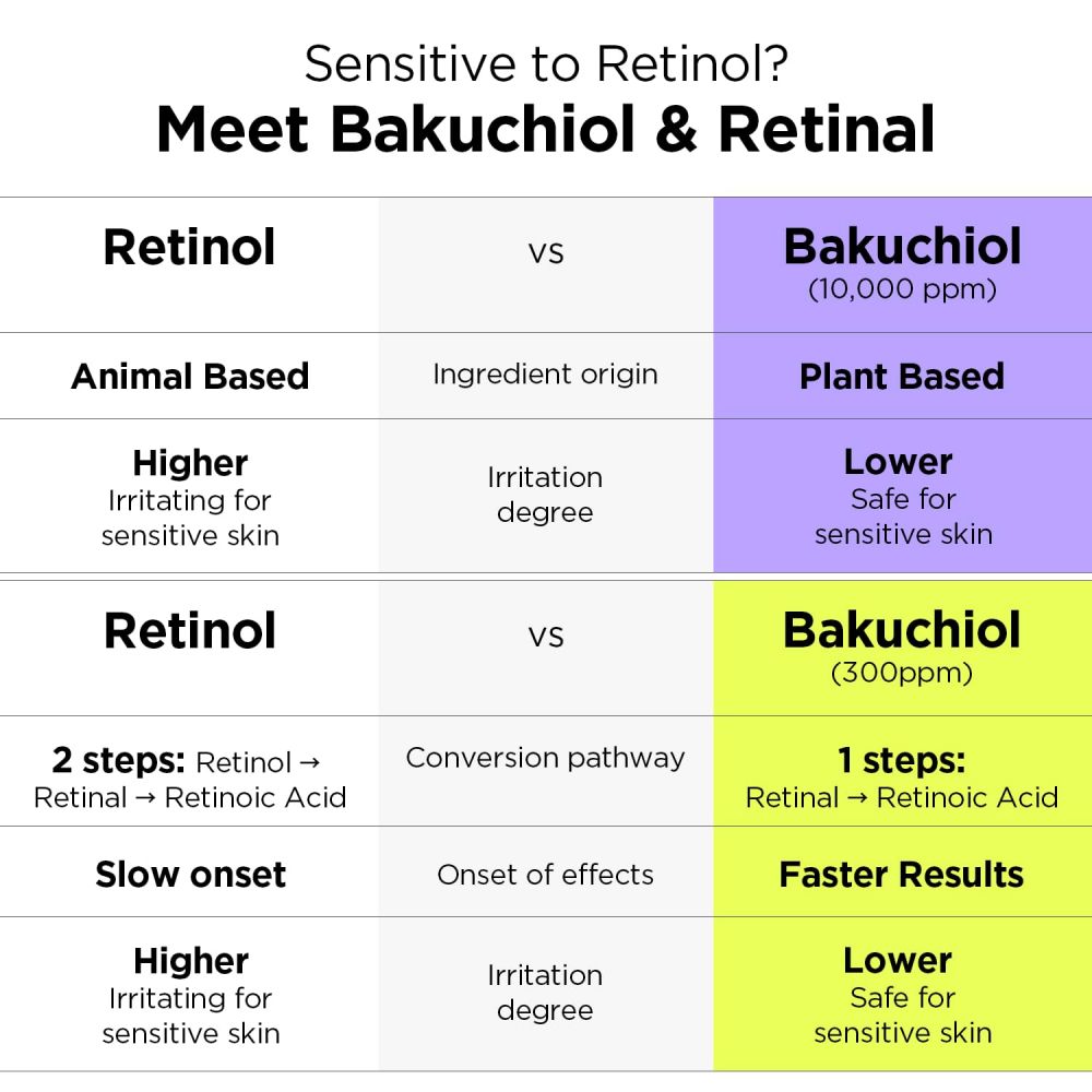 Retinal boosts collagen, while bakuchiol hydrates and soothes, delivering smoother, firmer skin.