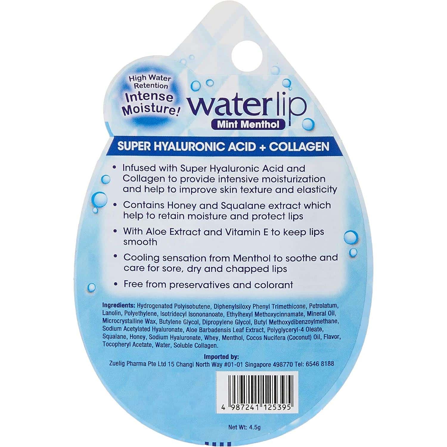 Hydrogenated Polyisobutene, Diphenylsiloxy Phenyl Trimethicone, Vaseline, Lanolin, Polyethylene, Isotridecyl Isononanoate, Ethylhexyl Methoxycinnamate, Mineral Oil, Microcrystalline Wax, Sodium Acetylated Hyaluronate(Super Hyaluronic Acid), Soluble Collagen, Aloe Vera Leaf Extract, Squalane, Honey, Sodium Hyaluronate, whey (Milk), Palm Oil, Tocopherol Acetate, Water, BG, DPG, Butyl Methoxydibenzoylmethane, Polyglyceryl-4 Oleate, Menthol, Fragrance