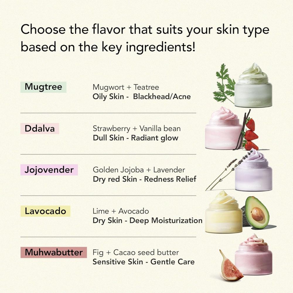 Unlike typical cleansers, WHIPPED Mugtree Vegan Cookie Clay Pack Cleanser features a patented whipped-cream texture, crafted through over 500 whipping cycles for ultra-fine particles that deeply cleanse without drying skin. Its vegan-friendly, cruelty-free formula is free of sulfates, parabens, and silicones, making it ideal for sensitive skin. The 2-in-1 cleanser and mask offers versatile care for quick or intensive pore cleansing.