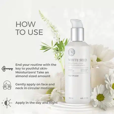Buy THE FACE SHOP White Seed Brightening Lotion to enjoy a hydrating, brightening formula that targets dullness and uneven skin tone. Powered by White Lupin Seed and White Daisy Flower Extract, this lightweight lotion delivers radiant, moisturized skin with every use. Suitable for all skin types, it balances oil and water for a smooth, glowing complexion, free from harsh chemicals.